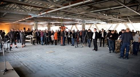 Tiltakið, sum varð hildið í leingjuni við høvuðsinngongdina og út móti stóra runda høvuðsbygninginum, byrjaði við, at Ewald Kjølbro, stjóri á Landsverki, bjóðaði vælkomin, og segði nøkur orð um gongdina í verkætlanini.