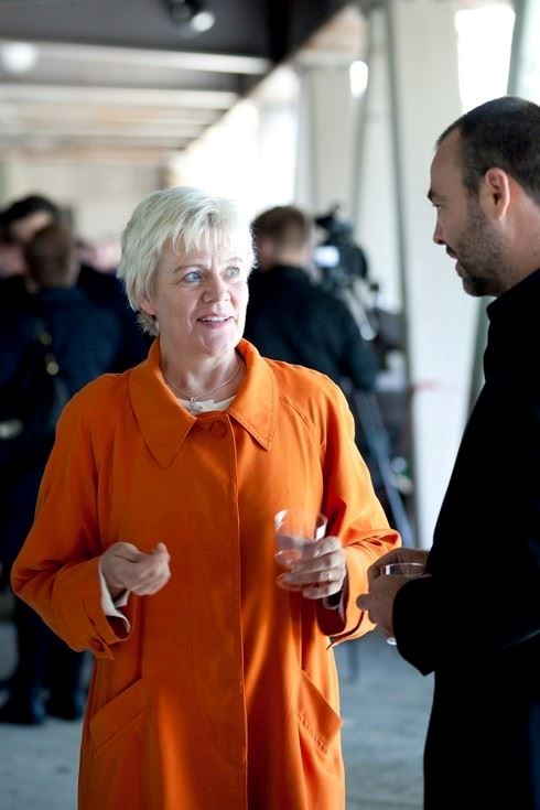 Síðani fekk Rigmor Dam, landsstýriskvinna, orðið, og eisini hon fegnaðist um teir stóru framtíðarmøguleikarnar, ið stóru og stásiligu skúlakarmarnar fara at geva unga ættarliðnum.