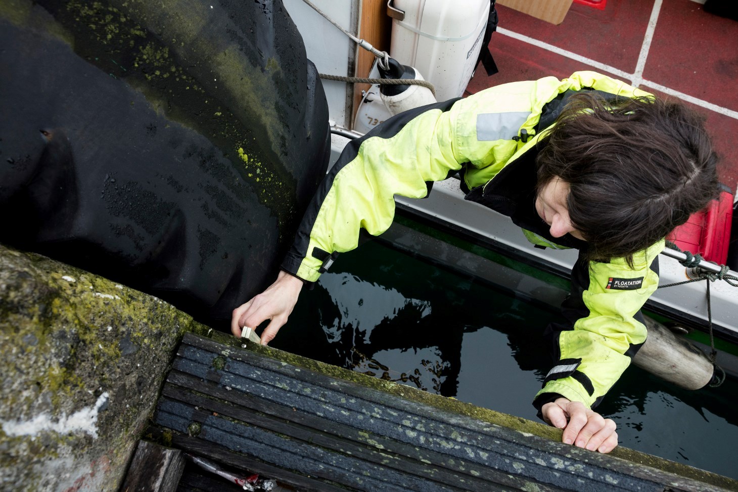 Í sambandi við arbeiðið á bátinum hjá Landsverki, Nísuni, eru altíð tvey fólk umborð til at taka sær av teimum ymsu uppgávunum, sum eru tengdar at uppmátingini.