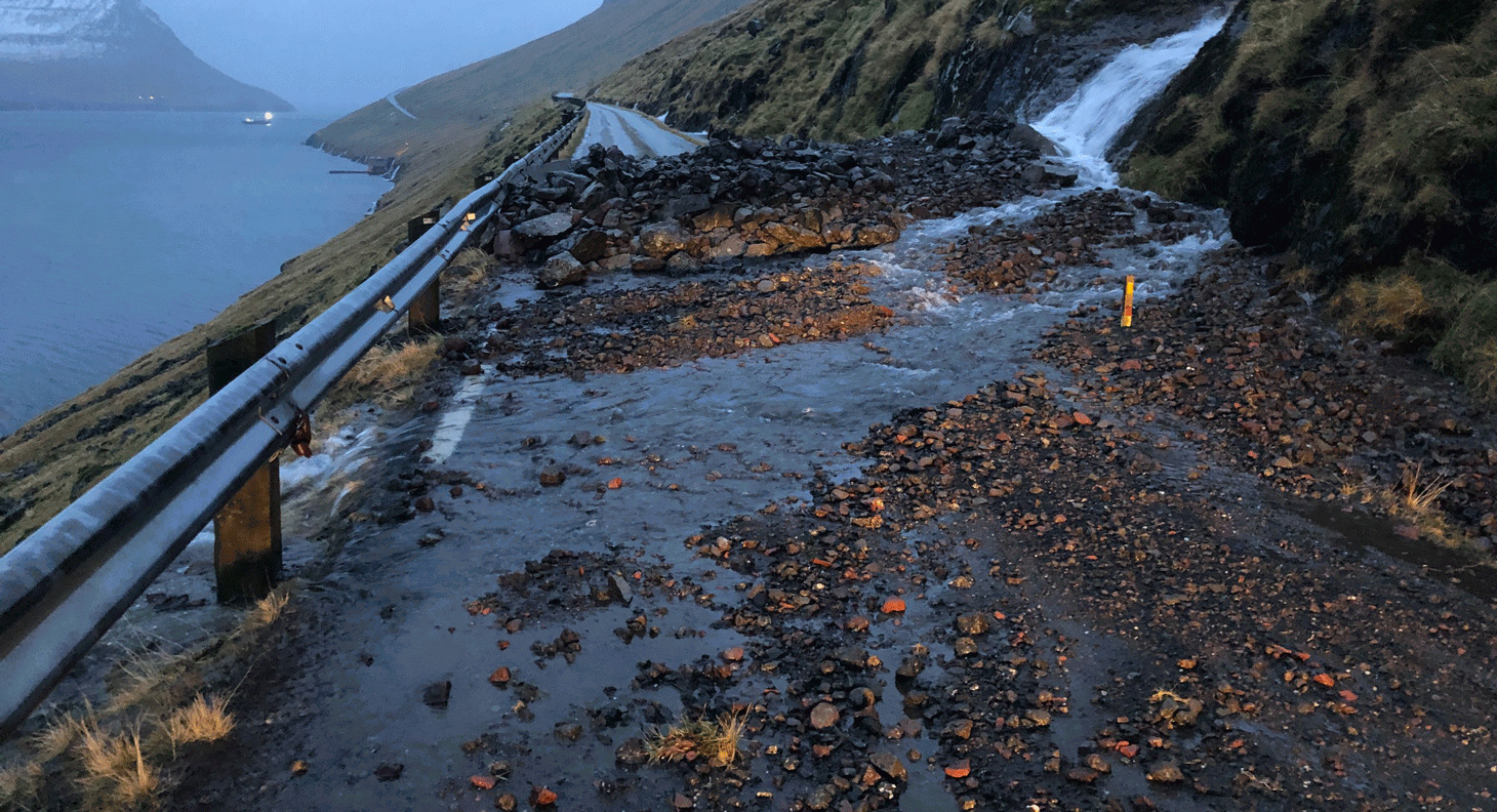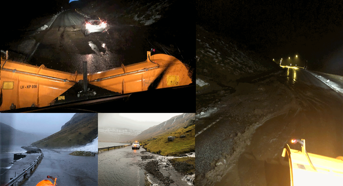 Fleiri av áarlopunum hendu um náttina, og fólk frá Landsverki vóru síðan boðsend at rudda tilfarið burtur av vegunum aftur beinanvegin og reinsa veitir og annað, so vatnið aftur kundi renna frítt undir landsvegunum.