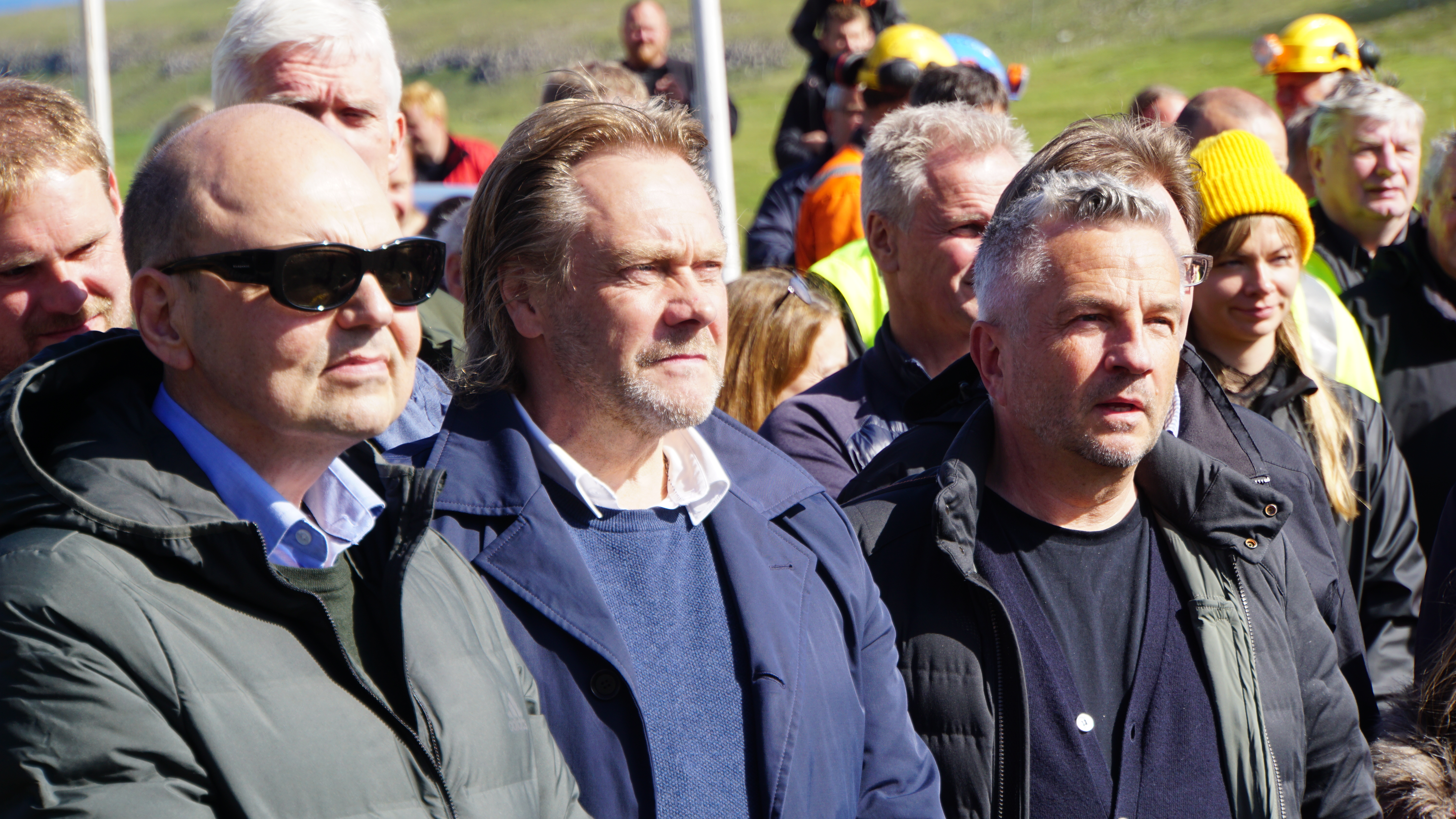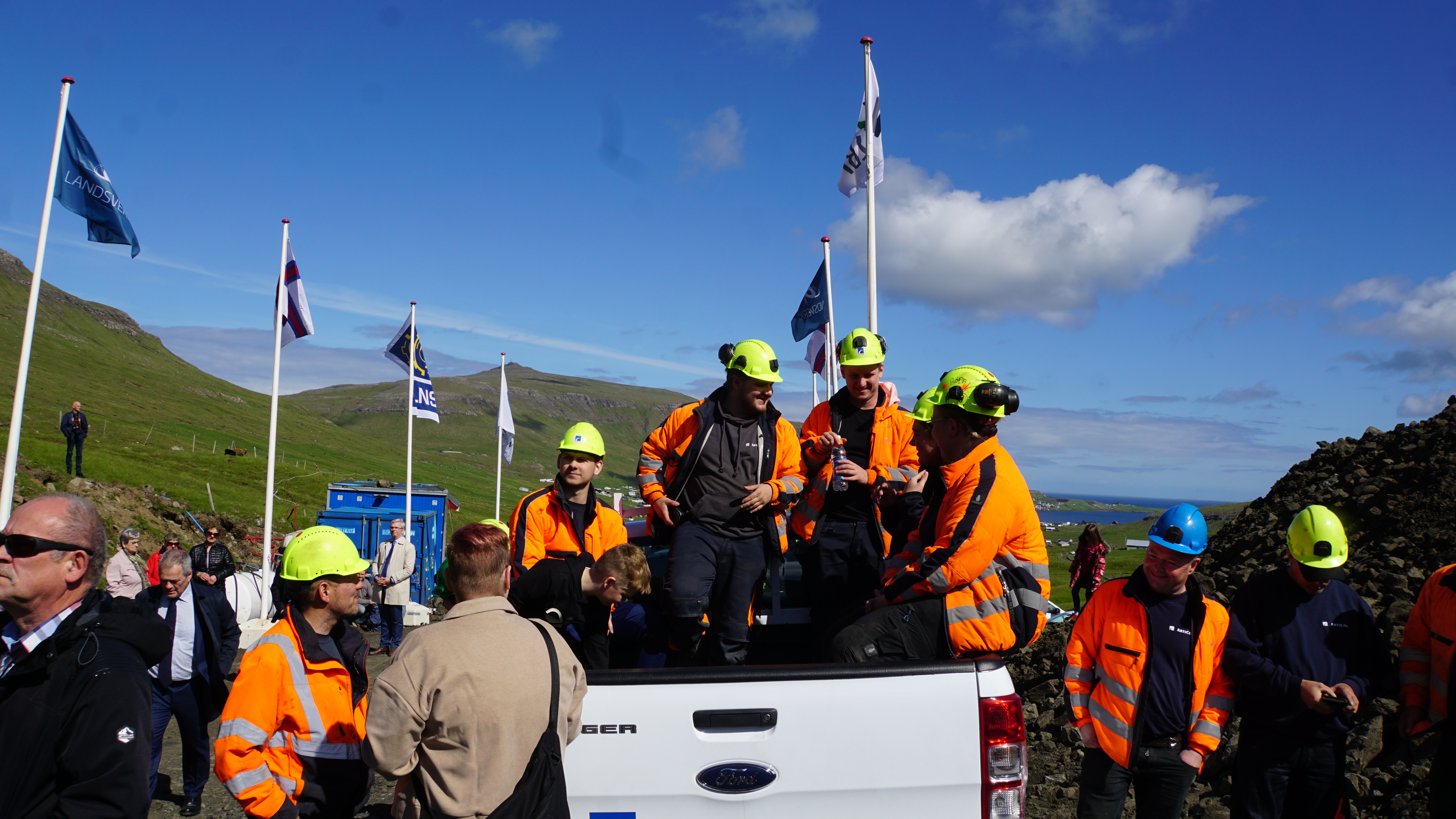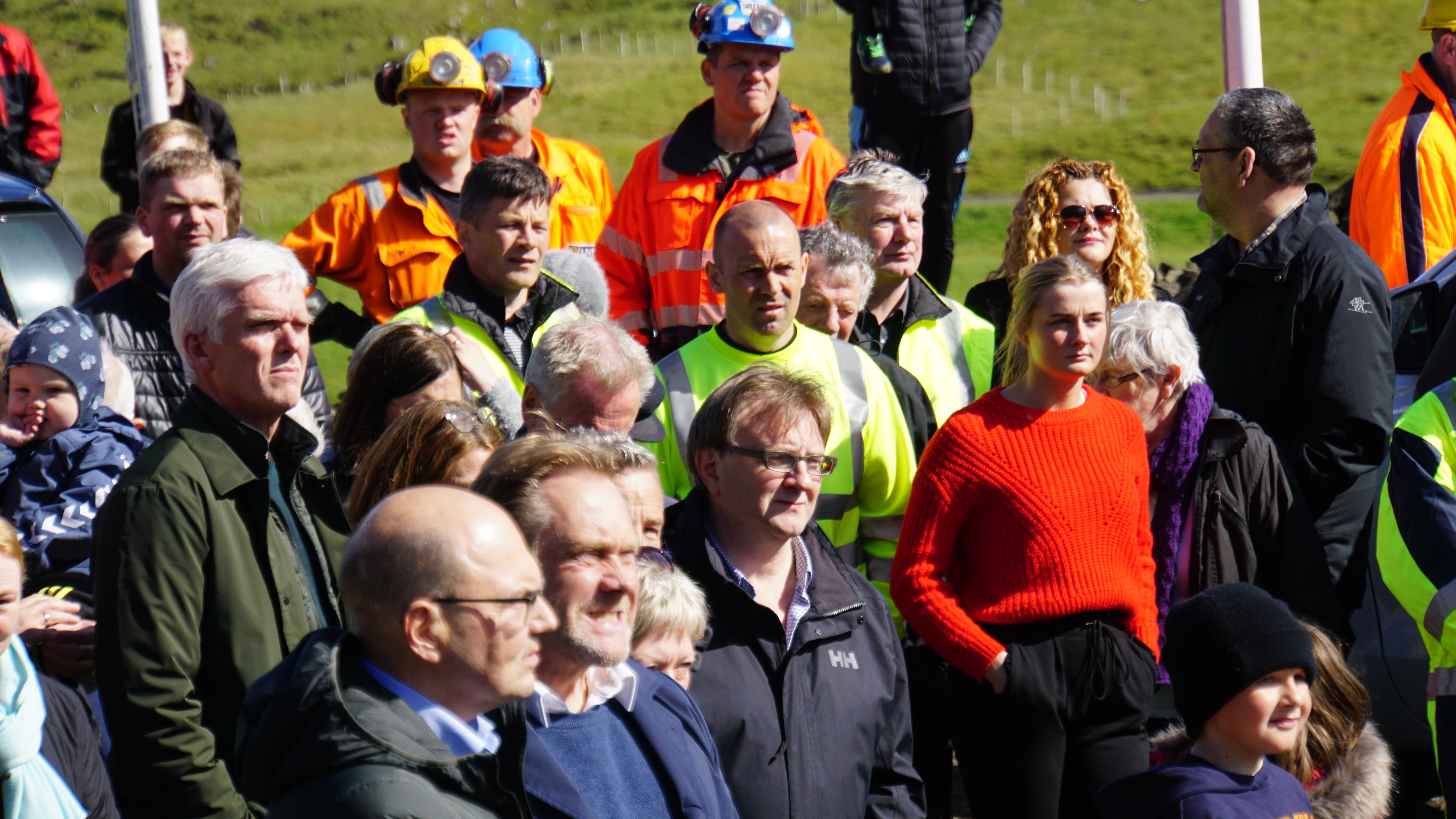 Umleið 100 fólk vóru savnað við tunnilsmunnan í Trongisvági, har Tvøroyrar Hornorkestur setti dám á løtuna, áðrenn Sigurd L. Lamhauge, stjóri á Landsverki, og Jørgen Niclasen, landsstýrismaður í fíggjarmálum hildu røðu.