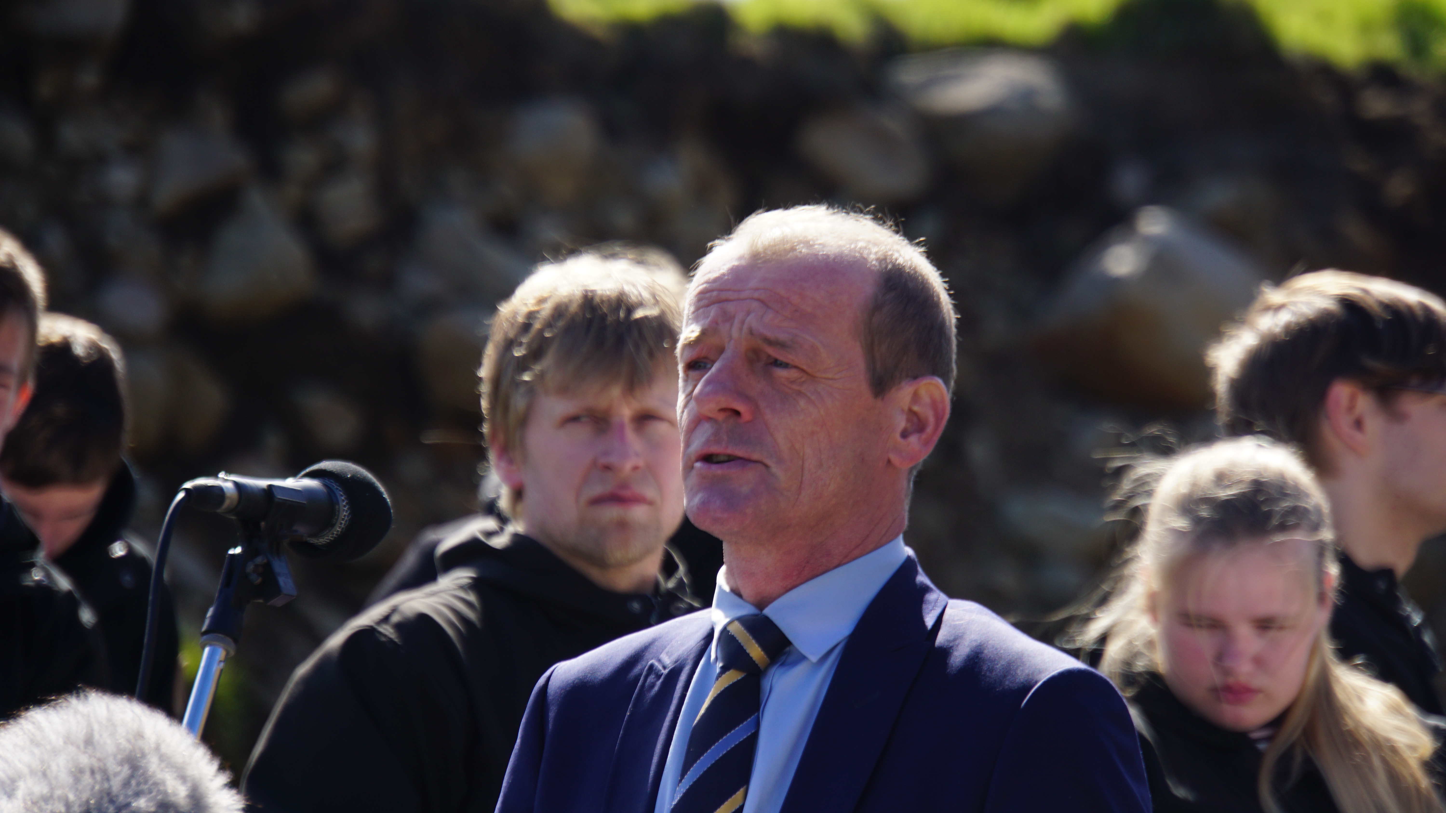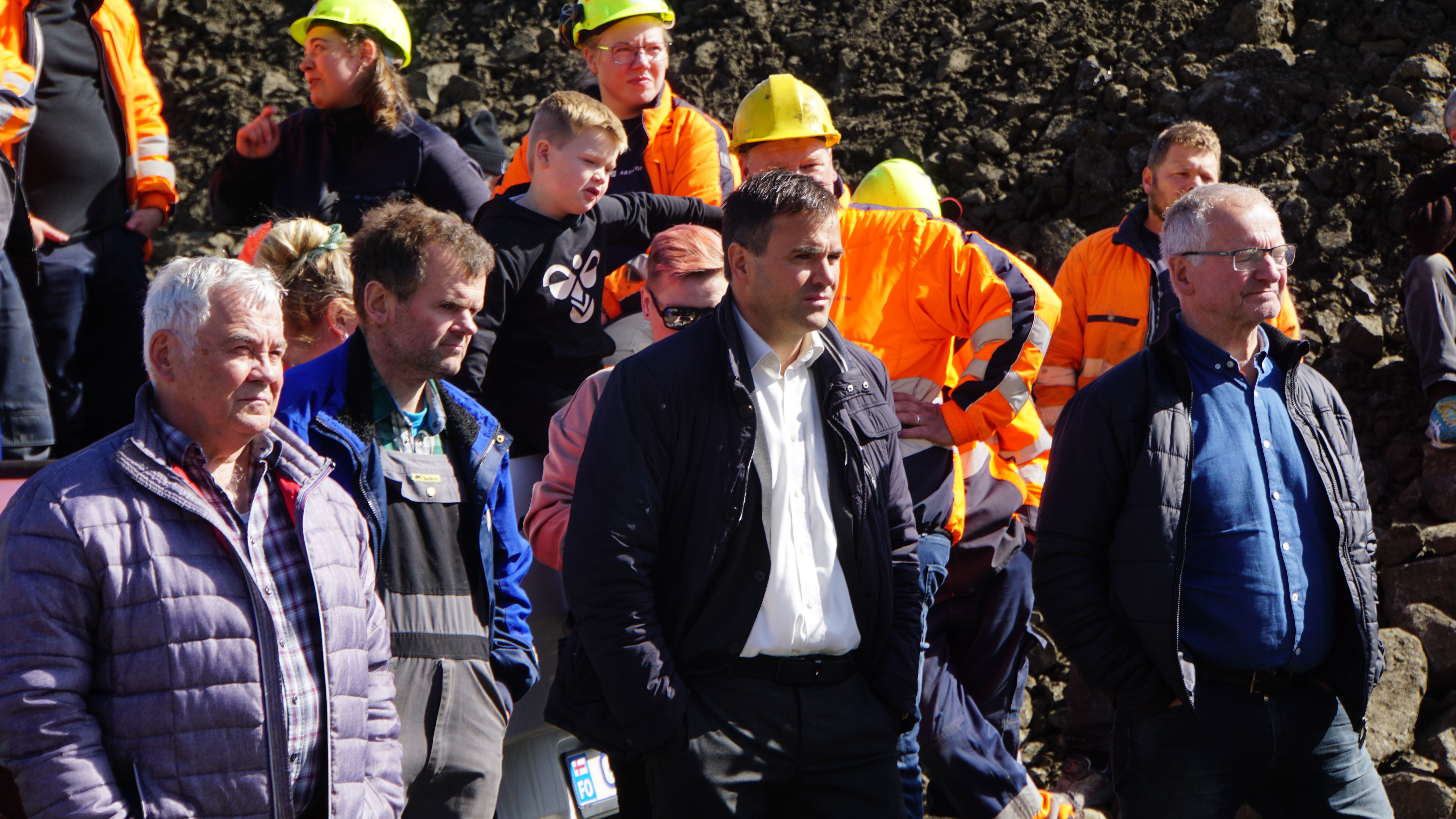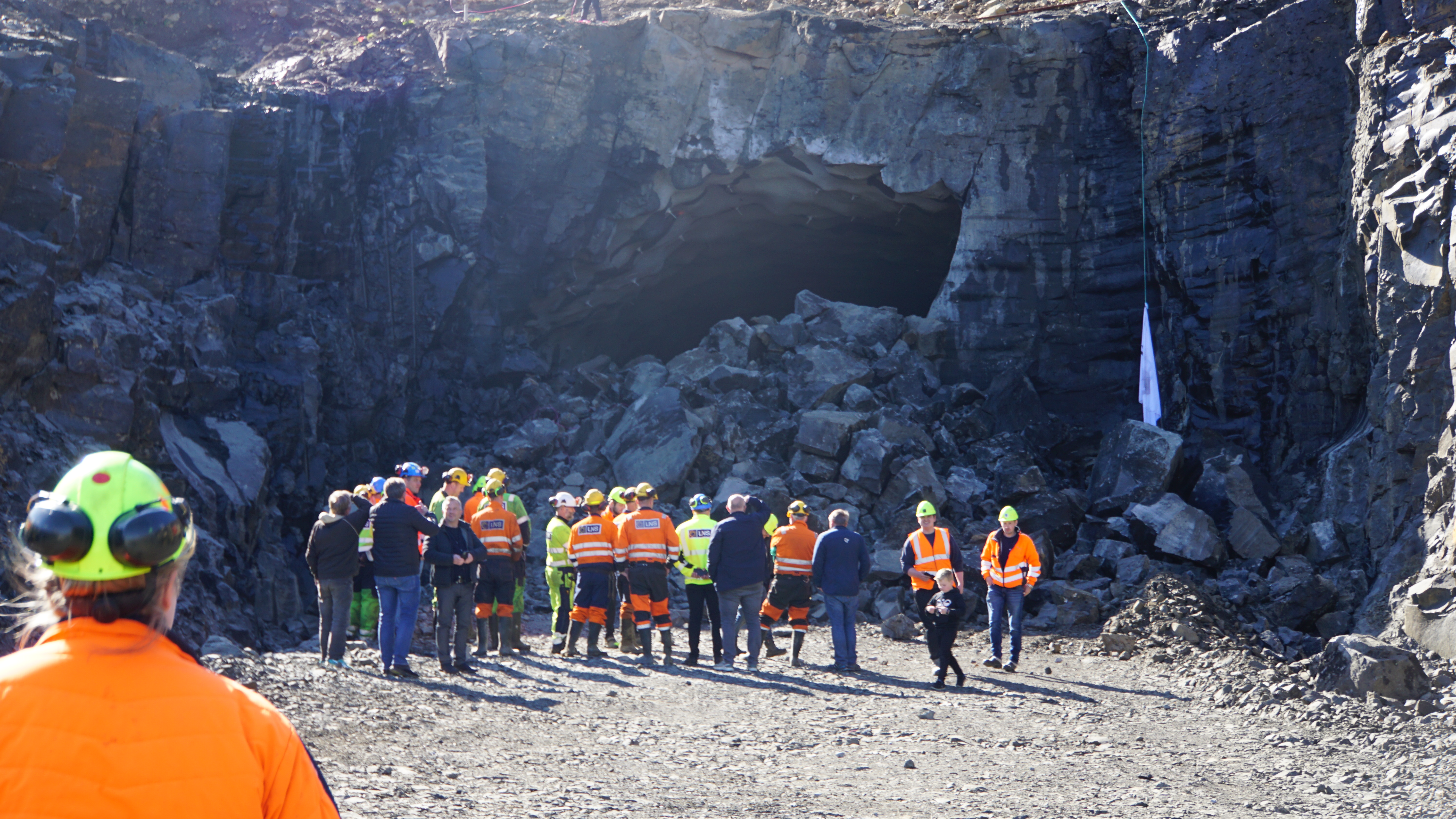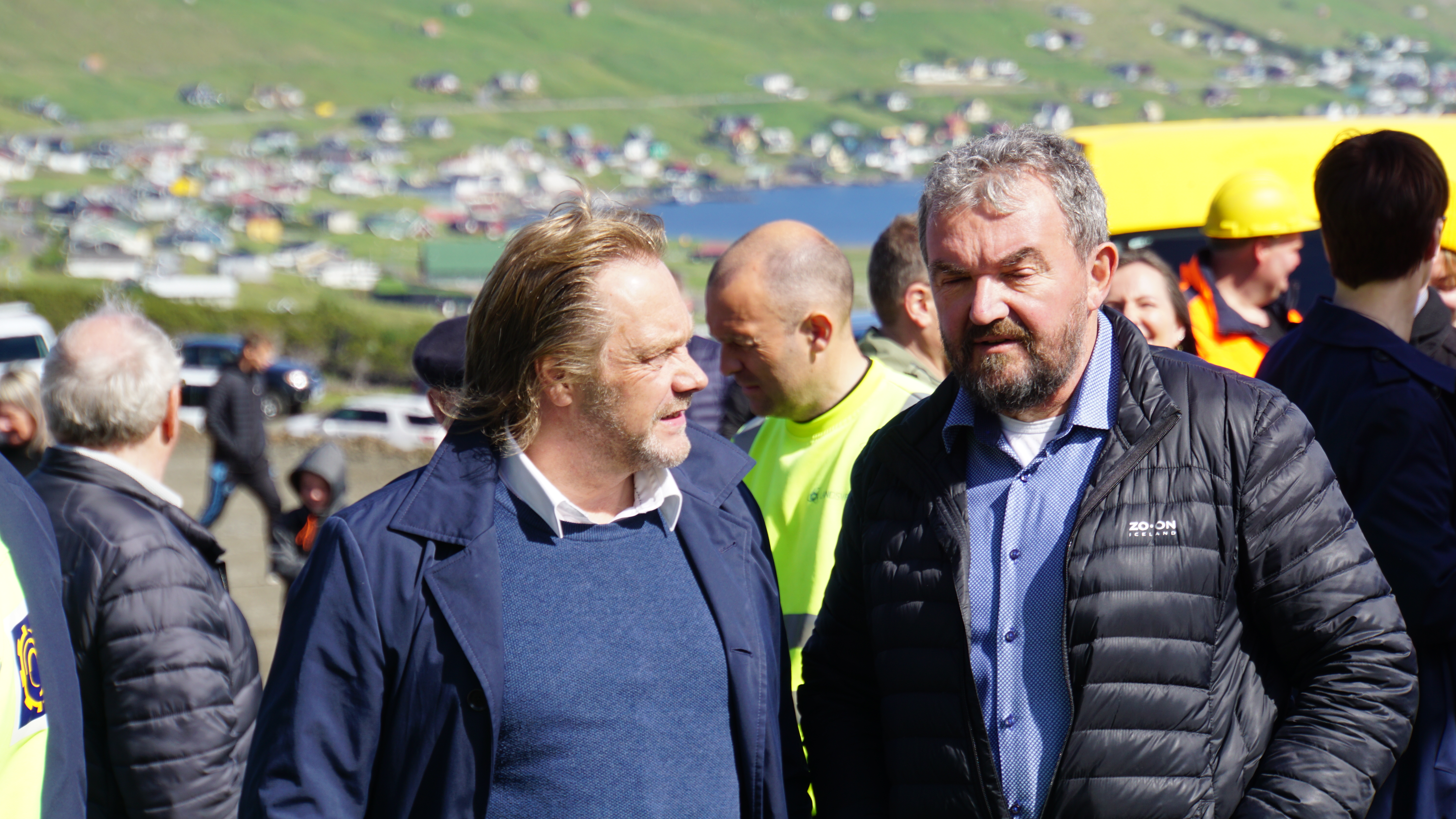 Umleið 100 fólk vóru savnað við tunnilsmunnan í Trongisvági, har Tvøroyrar Hornorkestur setti dám á løtuna, áðrenn Sigurd L. Lamhauge, stjóri á Landsverki, og Jørgen Niclasen, landsstýrismaður í fíggjarmálum hildu røðu.